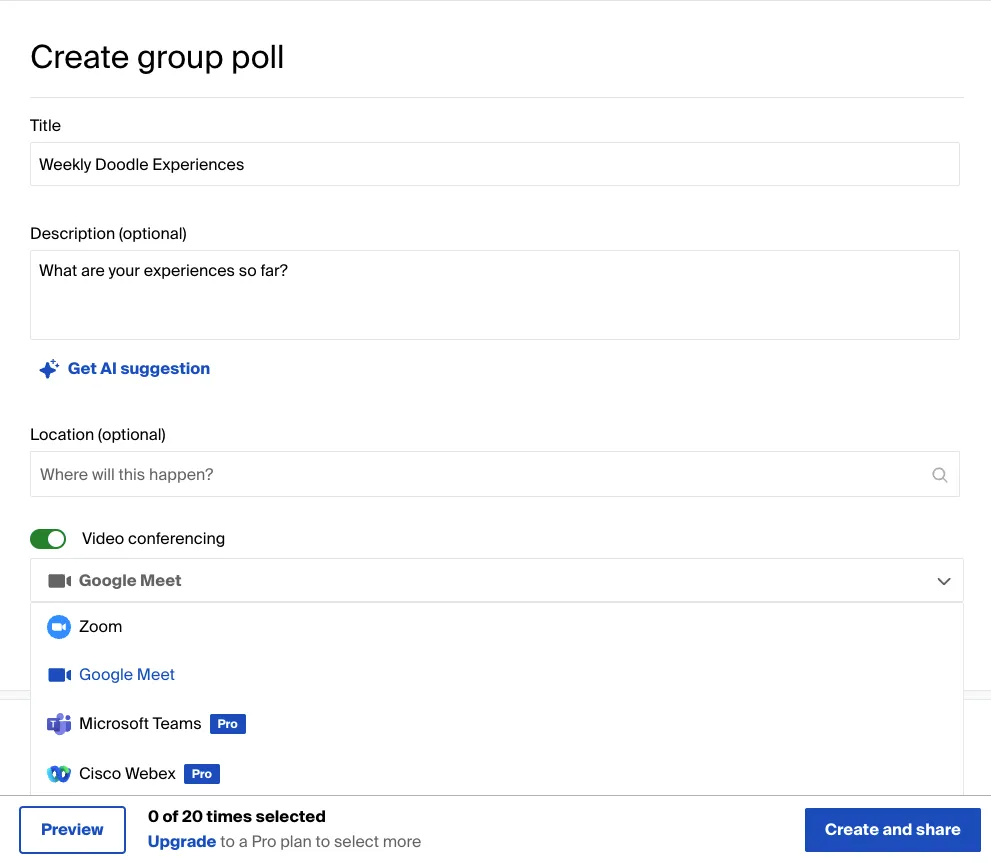 While Doodle’s free features work well for basic scheduling, its limitations in creating a comprehensive meeting poll and group survey might make it less appealing for more complex needs.
